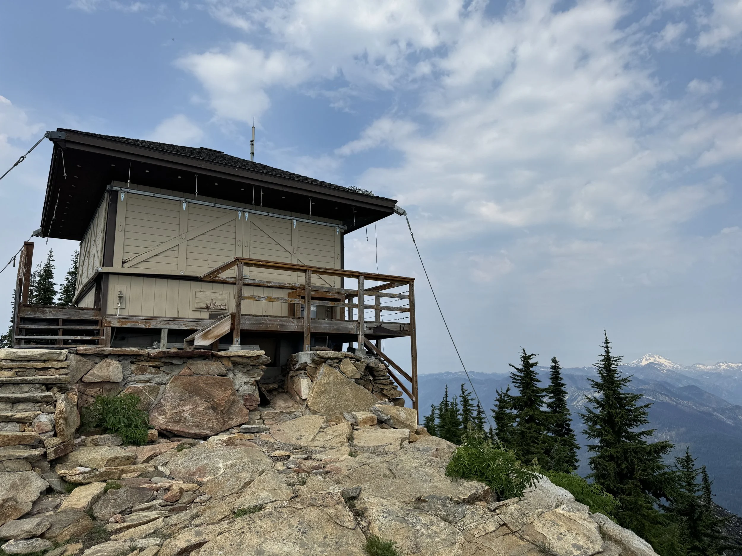 I chose to visit Alpine on a smoky July day, despite an iffy forecast and moderate air quality index. Convincing my husband to come along for the trip, we enjoyed solitude on trail and were fortunate to miss the surrounding storms in the area. The storm rolling in also cleared the lingering smoke in the air, and made for a pleasant outing overall. We didn’t stay long at the lookout, as I was starting to feel lightheaded/dizzy (which I would later find out was the onset of a round of Covid) and we saw some lightning in the distance.